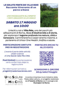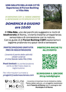 Una Salute nella Mia Città intende realizzare uno studio pilota sul valore e gli effetti del verde urbano sul benessere psico-fisico della cittadinanza. Questo studio verrà realizzato a Roma nel parco di Villa Ada, impegnando chi partecipa in attività di: